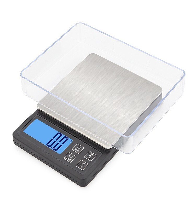product*1, user manual*1, colorful package box *1, AAA*2, PE bag*1, tray*2Multifunction electronic kitchen scale measuring range 600g, 1kg, 2kg, 3kg