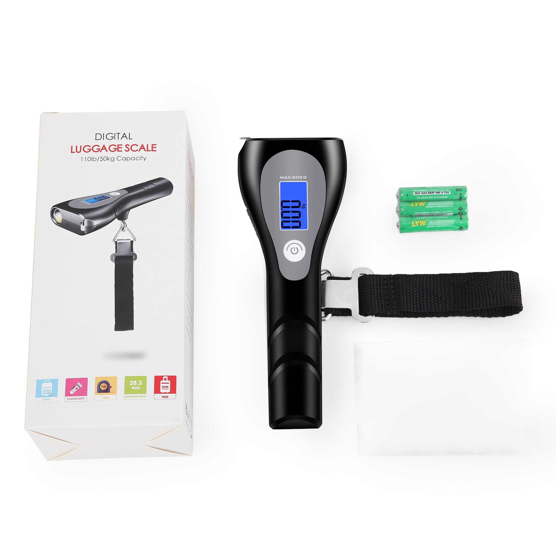 Digital Multifunction Luggage Scale 50kg/10gLow MOQCustomize: logo and packageCertification: CE, RoHS, FCC, UKCA, FDA, MSDS,
